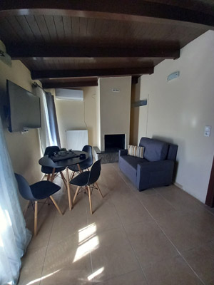 Ψυγείο, μπάνιο-ντους, έπιπλα εσωτερικού χώρου, κουζινικά σκεύη, πλυντήριο ρούχων, επίπεδη τηλεόραση 34”, τζάκι ή σόμπα πέλλετ